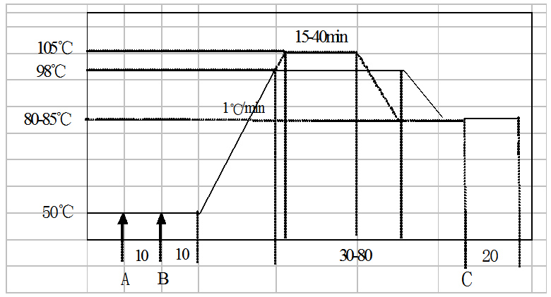 在另一處理浴中加入氨水或純堿于80-85℃清洗/Add Ammonia or Sodium Hydroxide (Caustic Soda) in another finishing bath, and do the scouring at 80-85C.